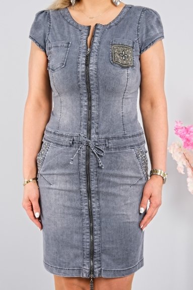 فستان مطرز بالترتر مع سحاب قصير من الدنيم للمقاسات الكبيرة