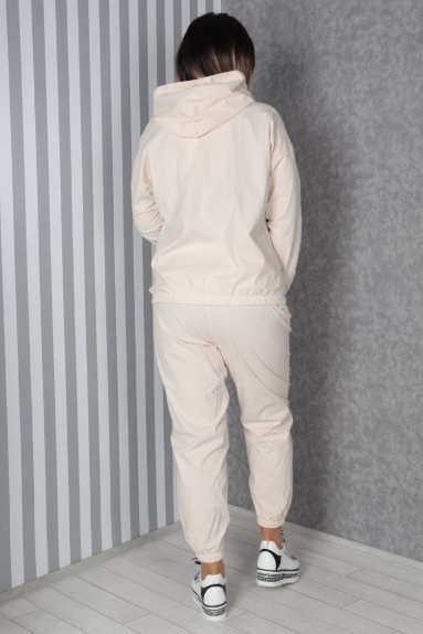 büyük beden, önde sağ ve sol tarafta dijital dizayn baskılı, kapşonlu, bel kol ve pantalon paçası lastikli, cepli, şık spor bayan ikili takım