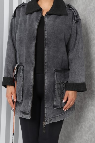 geniş cepli, büyük beden, yakalı, kalça hizasında, şık bayan, kot mont