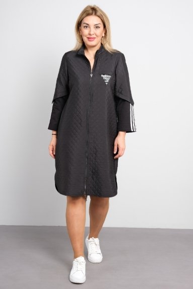 Büyük beden siyah kadın günlük elbise. Fermuarlı, uzun kollu elbise.
