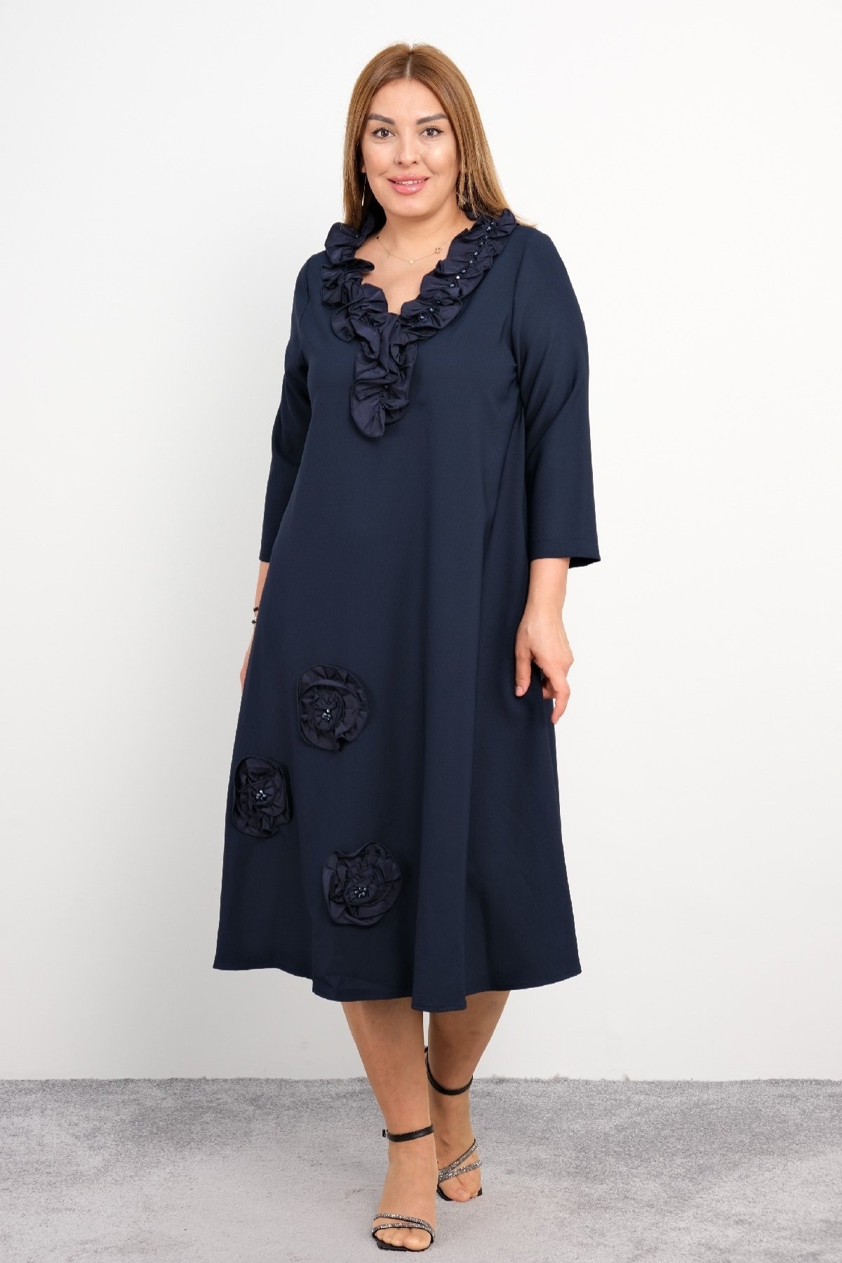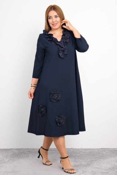 Lacivert Büyük Beden Günlük Elbise, zarif ve rahat tarzıyla günlük kullanıma uygun, konforlu kumaşından üretilmiştir. Şık ve rahat bir görünüm sunuyor.
